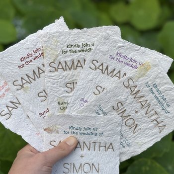 Sam did hand-make some paper invitations for our closest family members out of recycled paper and flower petals from the bouquet Simon proposed with. There's a good chance you'll see some more handmade paper goods at the wedding in Oregon!